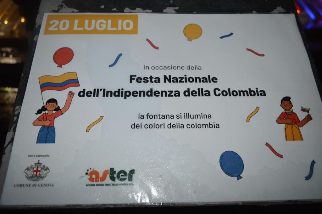 In un’atmosfera di festa e condivisione, la Fontana di Piazza di Ferrari sono stati illuminati con i colori della bandiera colombiana – giallo, blu e rosso – a testimonianza del forte legame di amicizia tra Colombia e Italia.