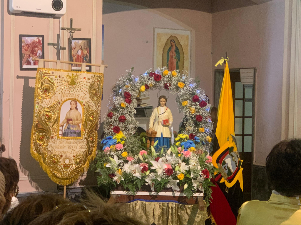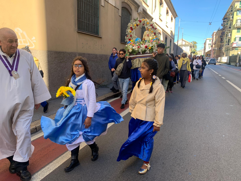 La celebración inició con una procesión en el barrio de Rivarolo, en un ambiente de oración, flores, cantos y bandera del Ecuador, que llenaron de color y espiritualidad el lugar. Al finalizar el recorrido, se celebró una misa solemne presidida por el padre ecuatoriano Juan Ramos, donde los fieles expresaron su devoción y agradecimiento a la santa de Nobol, canonizada en 2008 por el Papa Benedicto XVI.