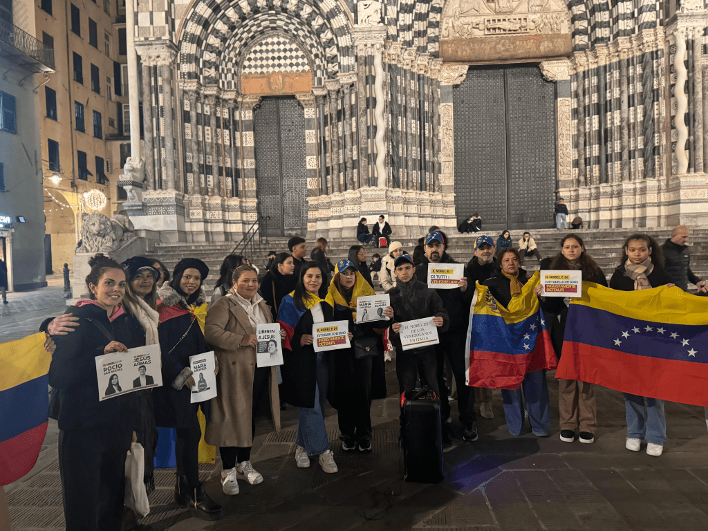 Genova – 6 dicembre. La comunità venezuelana in Liguria ha organizzato ieri la Marcia per la Pace e la Libertà, un corteo che ha attraversato il centro di Genova in sostegno al popolo venezuelano e alla leader dell’opposizione María Corina Machado, Premio Nobel per la Pace.