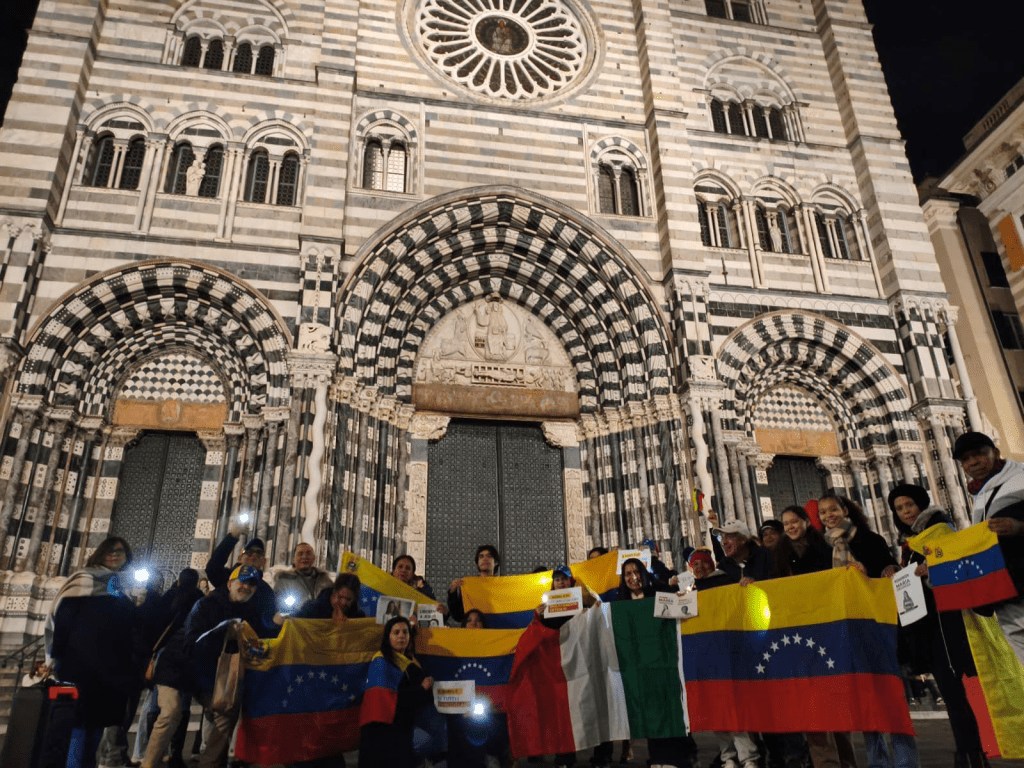 Il corteo è partito da Piazza De Ferrari per raggiungere la Cattedrale di San Lorenzo, dove si è tenuto un presidio statico con una preghiera collettiva per la libertà del Venezuela e per i