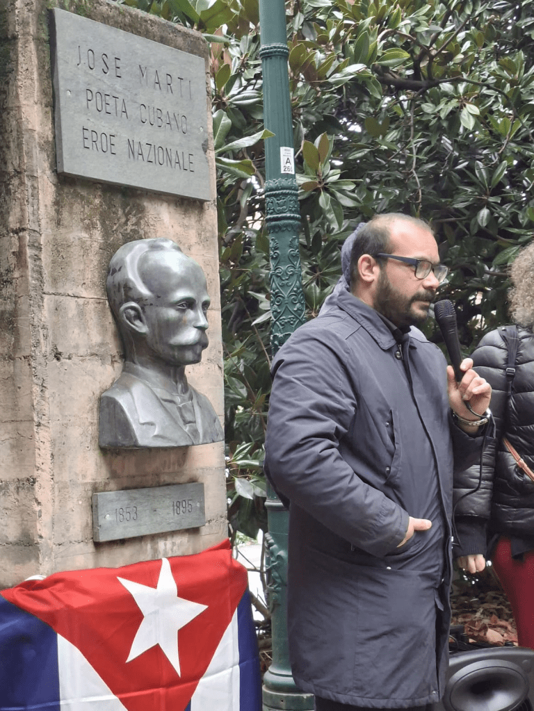 Dopo le parole del Console Generale, che ha richiamato la centralità del pensiero martiano nella storia e nei valori della nazione cubana, sono intervenuti altri rappresentanti, tra cui il coordinatore regionale Franco Zunino, sottolineando il significato storico e morale dell’eredità di Martí e l’importanza dei legami di amicizia tra Italia e Cuba.