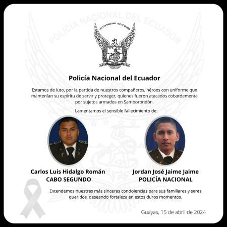 Ancora sangue in Ecuador. Due poliziotti uccisi mentre svolgevano lavori di indagine.