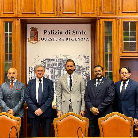Génova.- Viceministro de Relaciones Exteriores Carlos De la Mota junto al Cónsul General Nelsón Carela, encuentra al Jefe de la Policía Orazio D’Anna